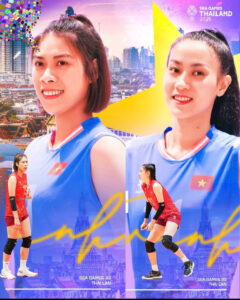 Lâm Oanh và Đối chuyền Kiều Trinh CLB Bóng chuyền nữ Binh chủng Thông tin – Binh đoàn 19 phối hợp ăn ý tiếp tục giúp đội tuyển nữ Việt Nam nối dài chuỗi chiến thắng tại SEA games 33